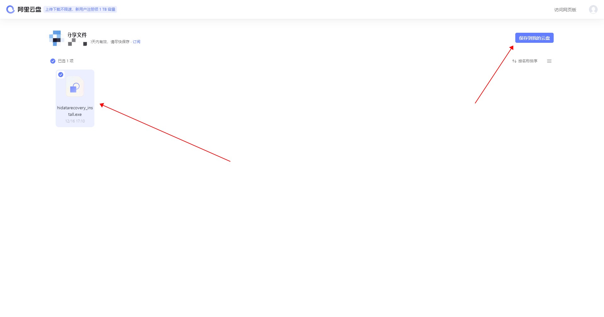 阿里云盘链接分享的文件可以下载保存。以阿里云磁盘网页版保存文件为例,分为以下五个步骤: