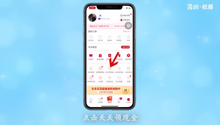 2.进入拼多多个人中心后,点击“每天领现金”;