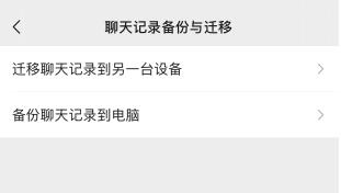 进入后,选择“将聊天日志迁移到另一台设备”或“将聊天日志备份到电脑”,以将聊天日志迁移到另一台设备为例。