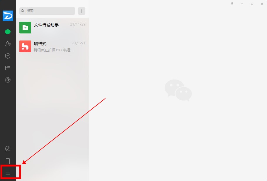 打开电脑里的微信,点击左下角的三条横线。