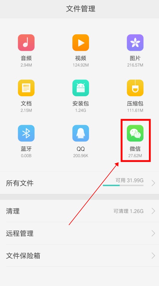 在文件管理中,点击“微信”选项。
