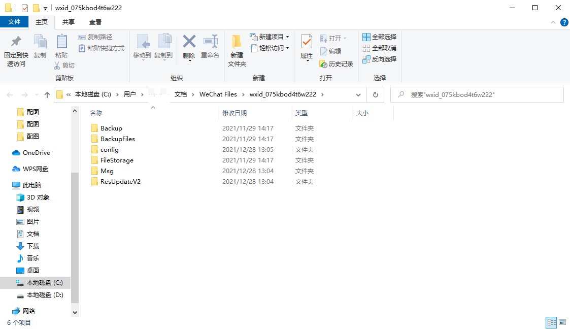 在打开的文件夹中,可以查看微信存储的文件。