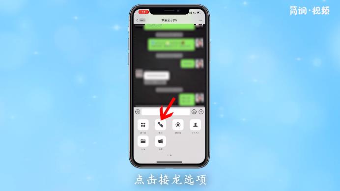微信中的接龙功能可以在群聊页面点击图标进行操作,如下: