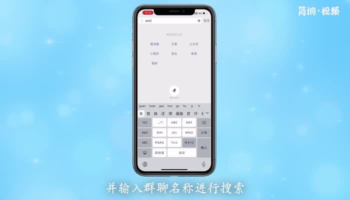 1.打开手机微信App,点击上方搜索框,输入群聊名称进行搜索;