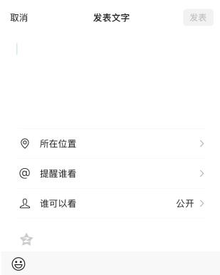 纯文本的微信朋友圈可以通过长按相机图标进入编辑界面,分为以下四个步骤: