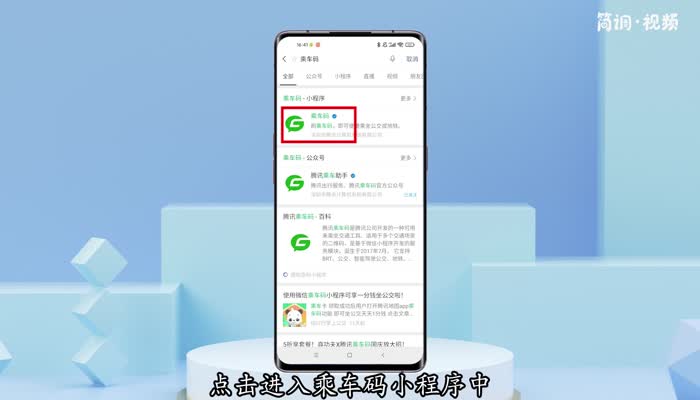 2.在弹出的搜索结果中,点击进入公交代码小程序;