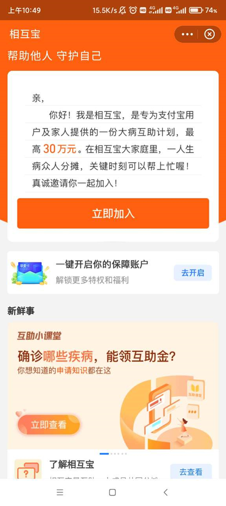 退出支付宝的互宝可以取消扣款。以支付宝10.2.38为例,分为以下六个步骤: