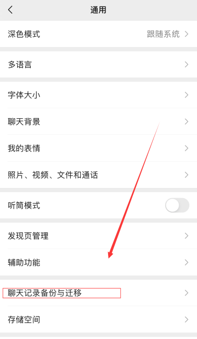 在常规页面,下拉找到并点击“聊天记录的备份和迁移”。