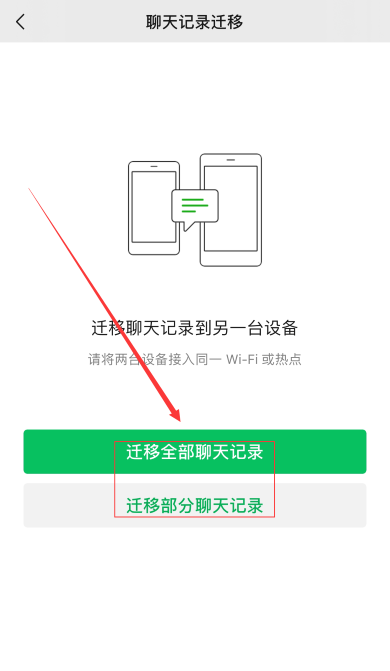 最后,点击将全部或部分聊天记录迁移到相应的设备上。