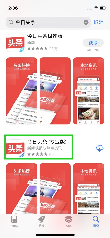 一个区别:今日头条专业版只在苹果应用商店有售,而普通版是所有手机通用的。