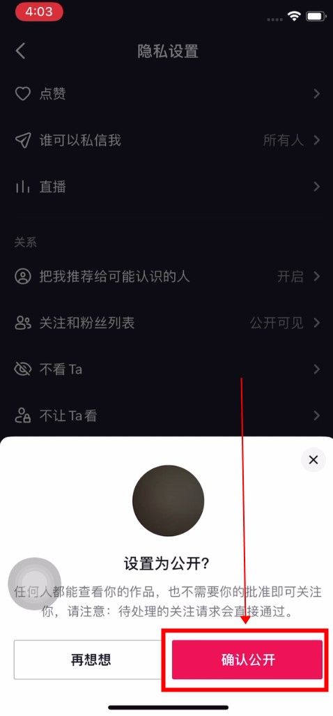 在最后一个弹出窗口中,单击“确认公开”按钮。