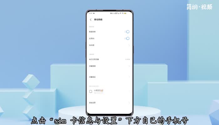 2.进入移动网络页面后,在“SIM卡信息和设置”下点击你的手机号码;