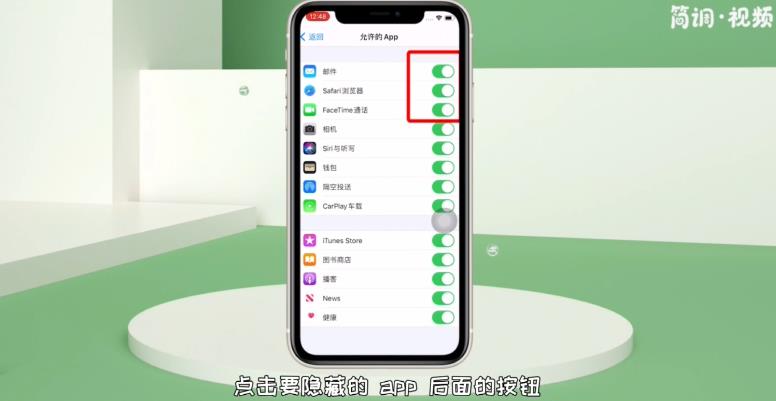 5.然后点按“允许的应用程序”,并点按您想要隐藏的应用程序后面的按钮来关闭它。