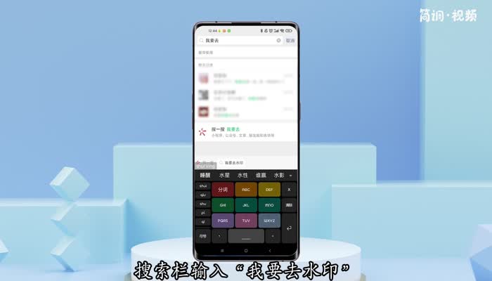3.打开微信,在搜索栏输入“我要水印”,点击搜索;
