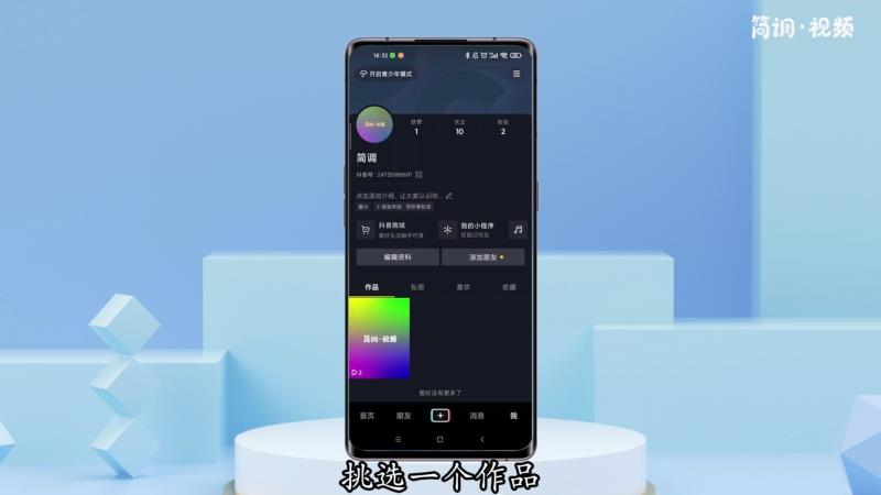 1、打开Tik Tok,在作品栏中,选择一幅作品;