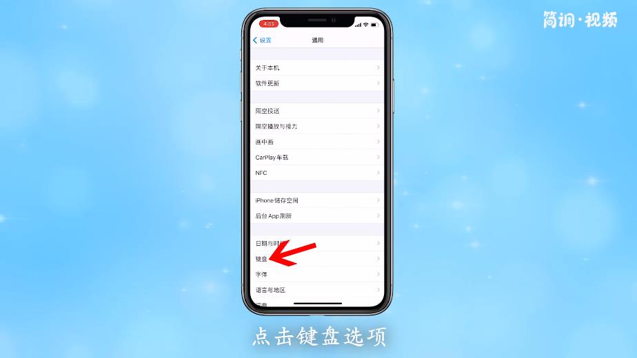 3.进入通用后,点击键盘选项,进入键盘设置页面;