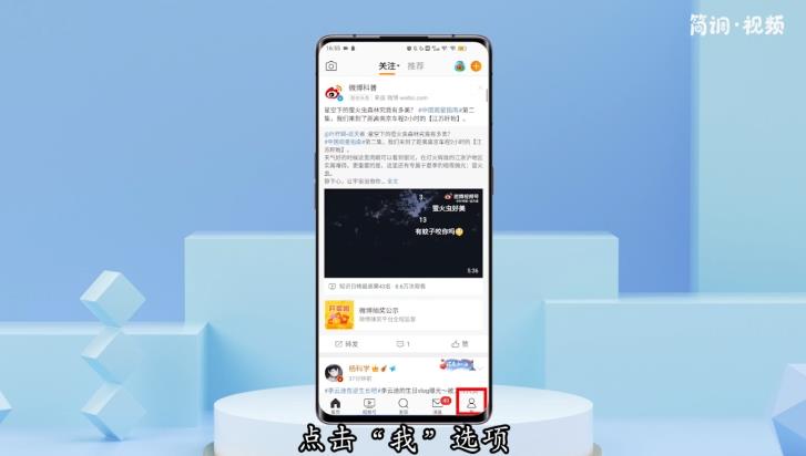 1.打开手机桌面的微博,进入微博后,点击“我”选项,进入微博的个人页面;