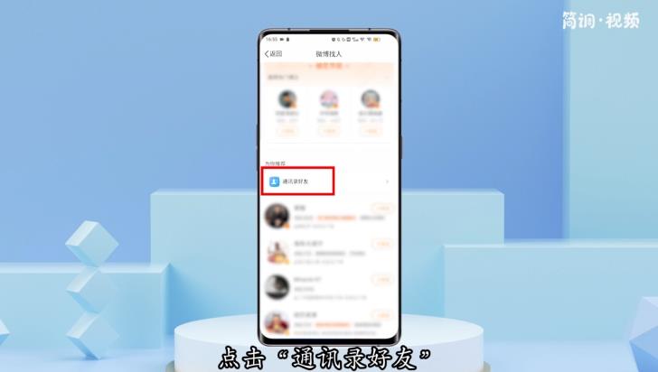 3.进入微博搜索页面后,滑动屏幕,点击“通讯录好友”;