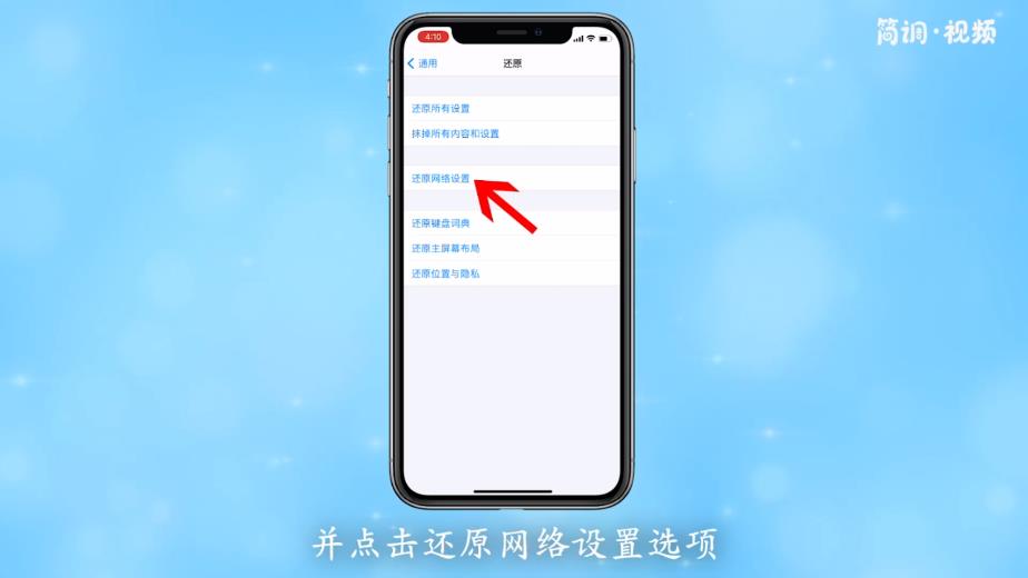 4.在还原页面中找到并单击还原网络设置的选项;