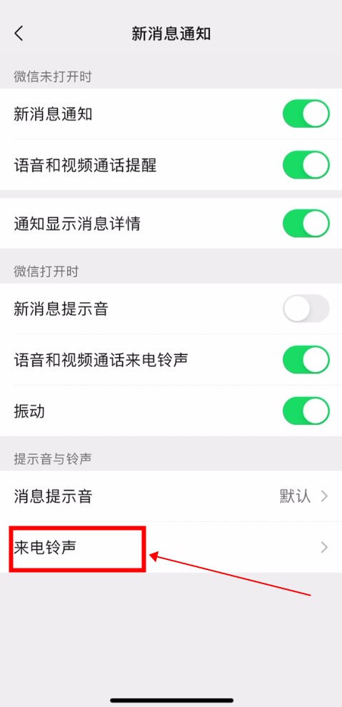 您可以在这里设置一般的微信铃声,点击“更改铃声”。