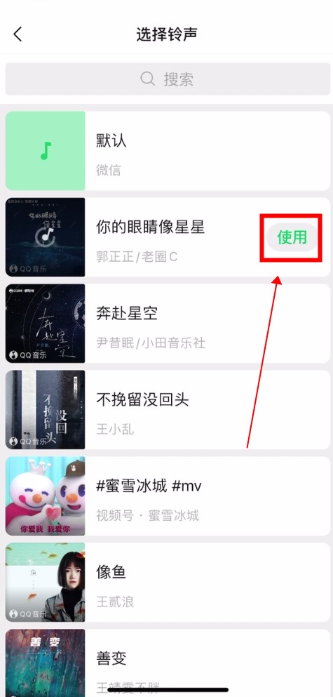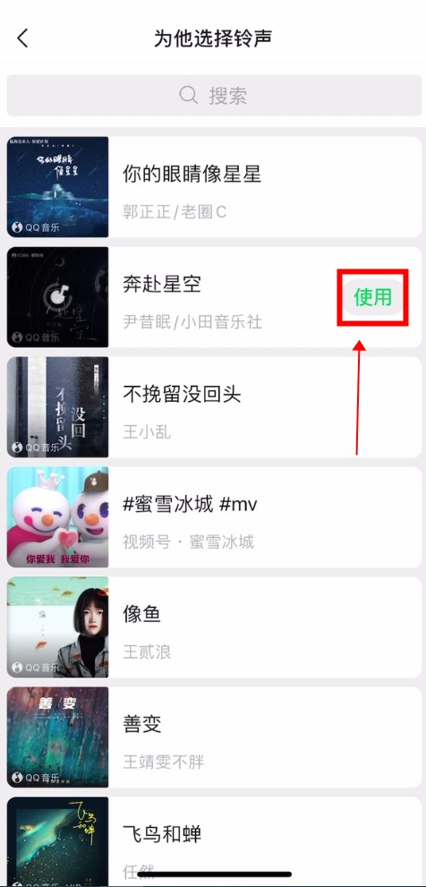 选择一个朋友和一首歌曲铃声,并点击“使用”。
