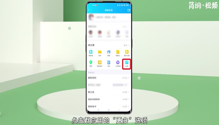 3.在群聊设置界面,点击群应用的“更多”选项,点击搜索框;