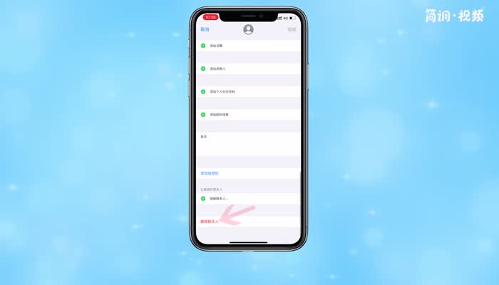 4.点击页面底部的“删除联系人”选项,继续点击弹出窗口中的“删除联系人”。