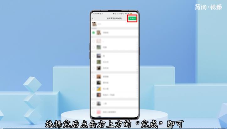 5.选择并单击联系人,然后单击右上角的“完成”。