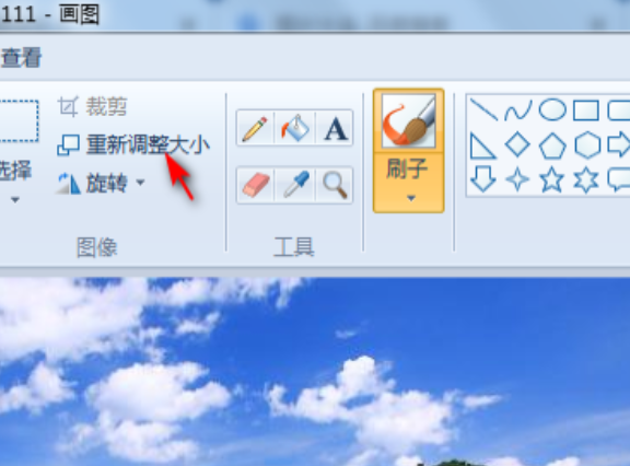 4.成功打开图片后,在上面的工具栏中找到并点击“调整大小”功能命令。