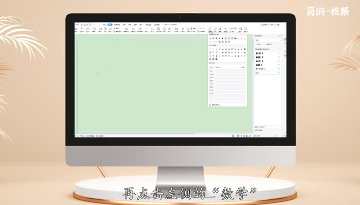 2.在插入界面,点击“符号”下拉箭头,再点击左侧“数学”即可看到所有数学符号;