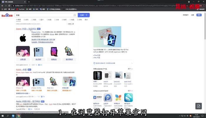 1.在浏览器中打开苹果官网,进入官网后,点击上面的搜索图标;