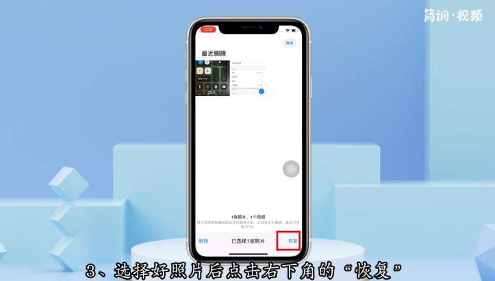 3.选择要恢复的照片,点击下面的“恢复”;