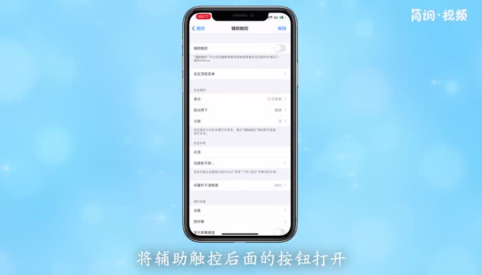 3.页面跳转后,打开“辅助触摸”后面的按钮,打开手机的触摸点;