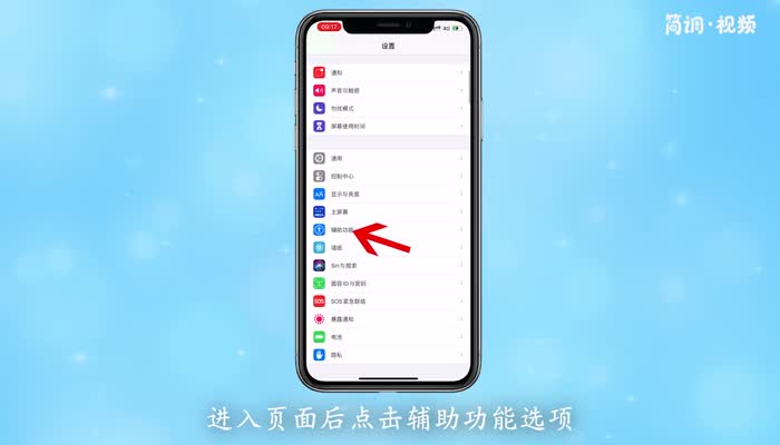 1.打开手机上的设置功能,进入页面后点击“辅助功能”选项,进入辅助功能页面;