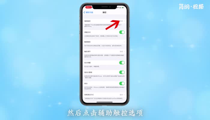 苹果手机桌面上的圆点。进入辅助功能页面后,选择触摸选项并开启。具体操作流程如下: