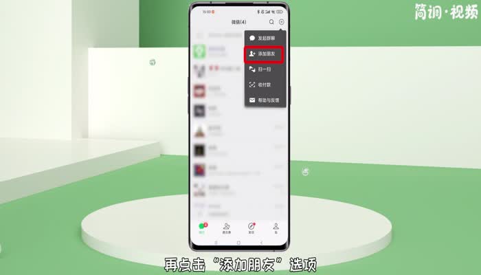 1.打开微信,点击页面右上角的“”标志,然后点击“添加好友”选项;