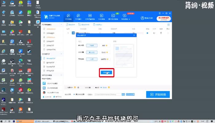 5.然后在弹出的对话框中设置,再次点击开始转换。