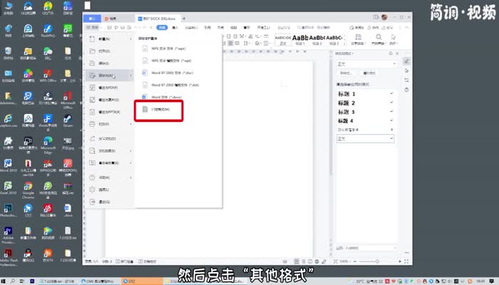2.将光标移动到“另存为”然后点击“其他格式”;