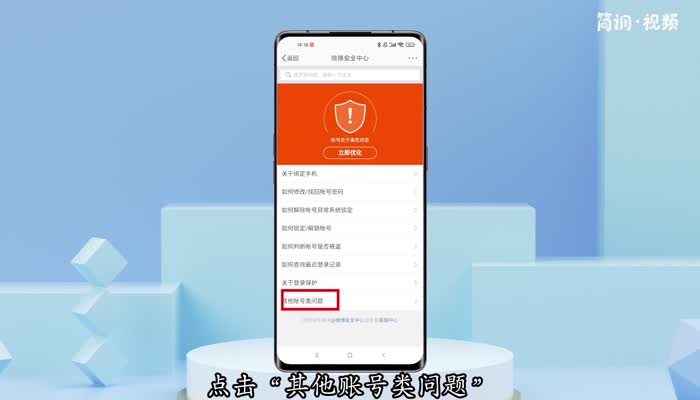3.进入界面后,点击“其他账号问题”,然后点击“如何注销微博账号”;