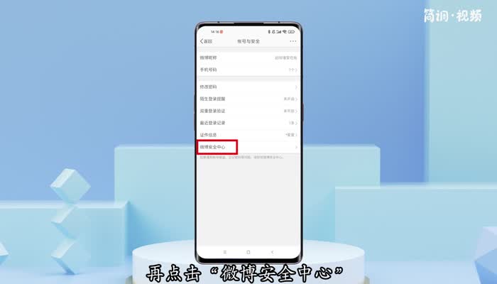 2.在设置界面,点击“账号和安全”,然后点击“微博安全中心”;