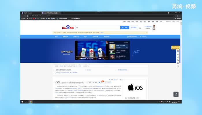 IOS是苹果公司开发的移动操作系统。苹果在2007年1月9日的Macworld大会上首次公布了这一系统。最初这个系统叫“iPhone OS”,在2010年苹果全球开发者大会上改名为“IOS”。要了解IOS系统,可以在百度百科进行查询。操作如下所示:
