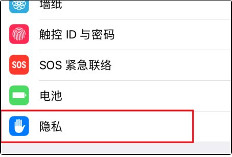 2.接下来,进入设置界面后,向上滑动界面,选择隐私选项。