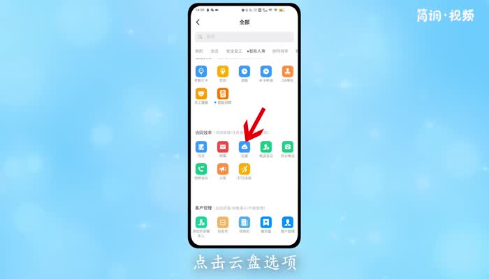 4.找到“协同效率”,点击“云盘”选项,打开云盘;
