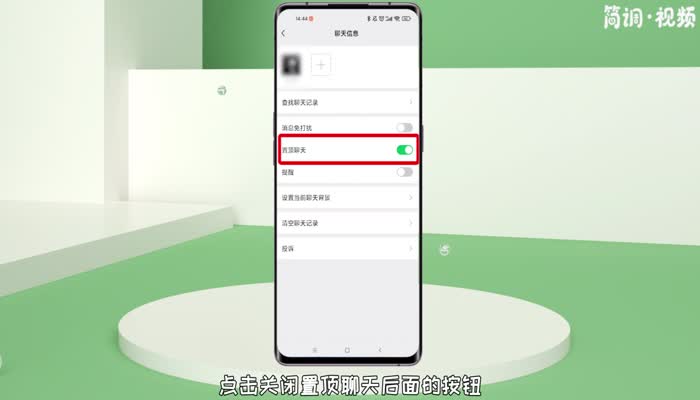 4.在聊天信息界面,点击关闭顶聊后面的按钮,取消好友的顶聊;