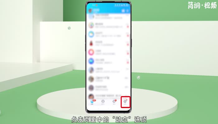 1.打开qq,点击页面中的“动态”选项,进入动态页面;