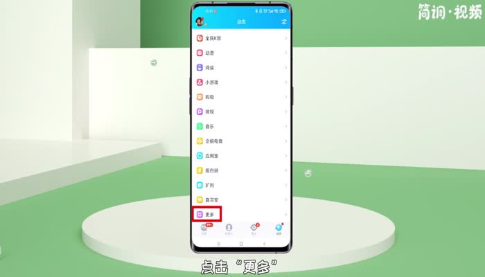2.在动态页面,点击“更多”进入所有动态业务界面;