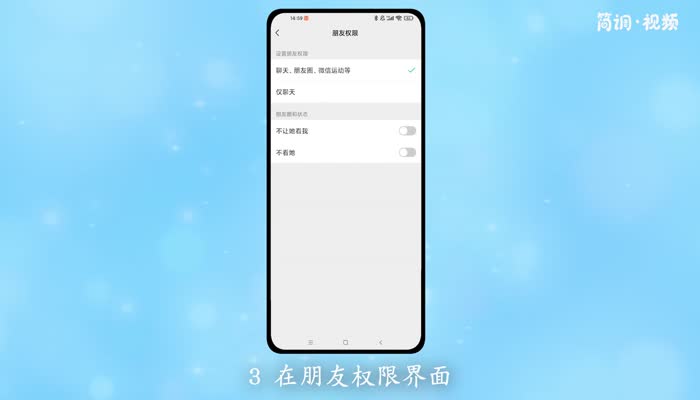 3.在好友权限界面,点击“不要让她看到我”后面的按钮,好友无法查看自己的朋友圈。