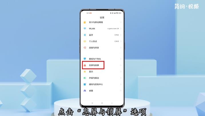 2.在设置界面,点击“息屏锁屏”选项,进入息屏锁屏界面;