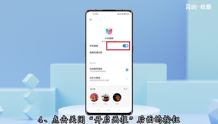 小米锁屏左下角的花是小米画报的标志。如果想取消,可以在锁屏画报界面关闭小米画报。关闭小米画报的具体操作步骤如下: