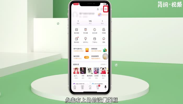 2.在个人页面,点击右上角的设置图标,进入微博设置页面;